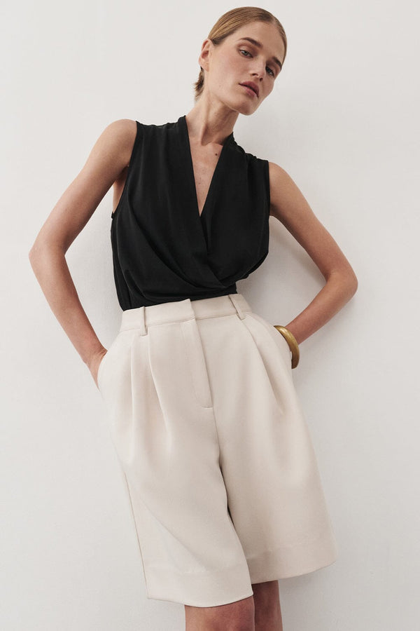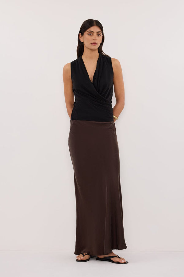 FELICITY BLACK SLEEVELESS WRAP TOP