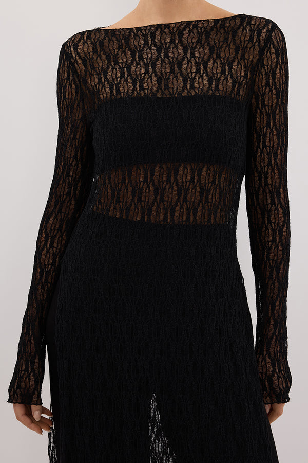 LIZZIE BLACK BOAT NECK TUNIC TOP