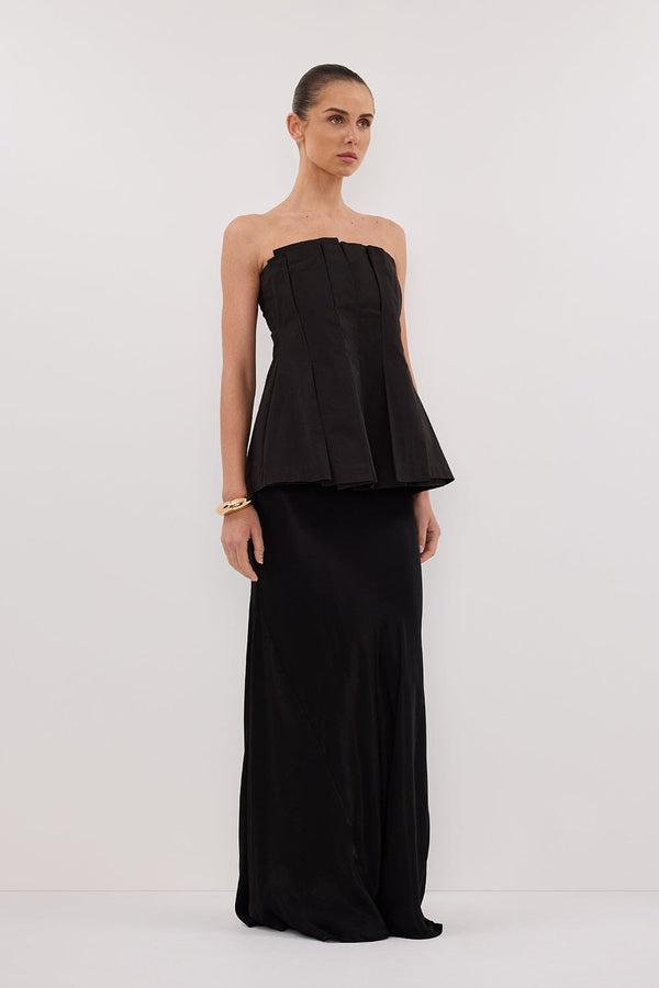 LILLY BLACK PLEATED STRAPLESS TOP