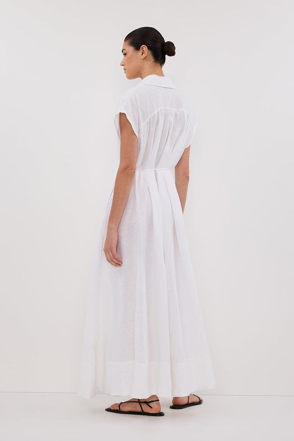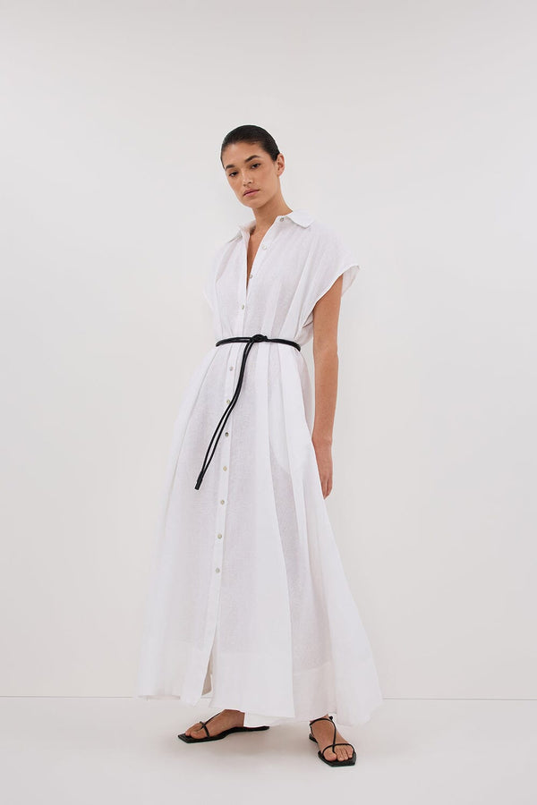 LANA WHITE LINEN MIDI SHIRT DRESS