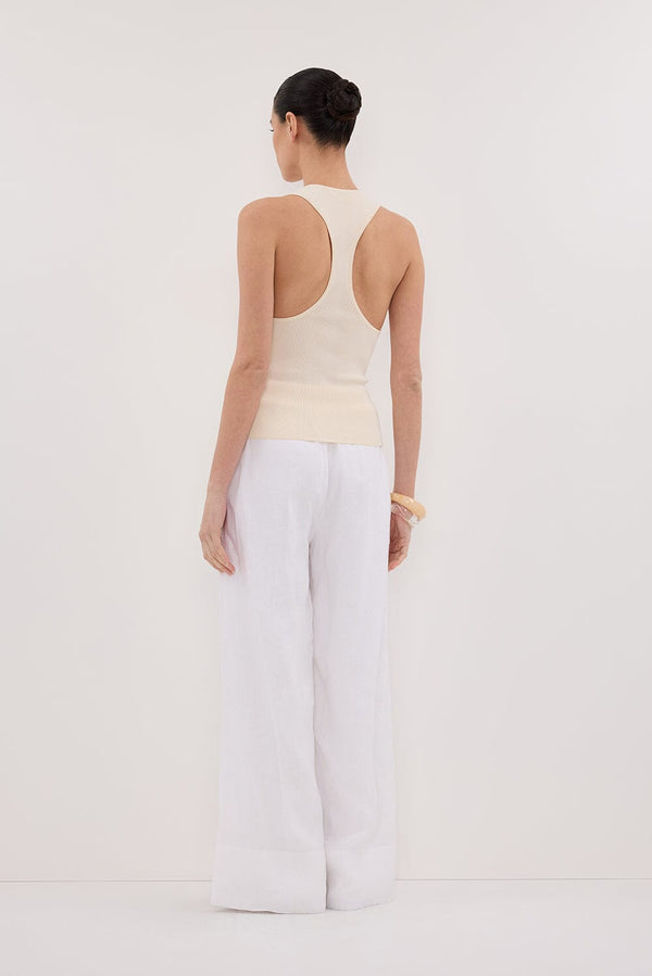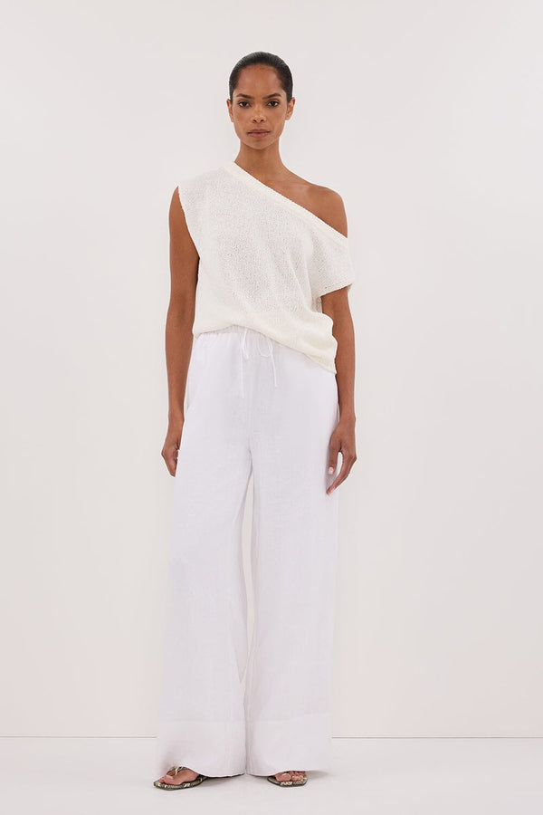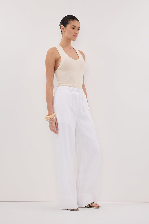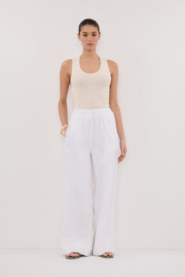 GINA WHITE LINEN ELASTIC WAIST PANT