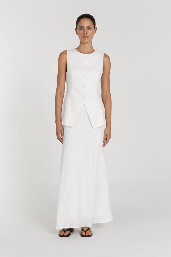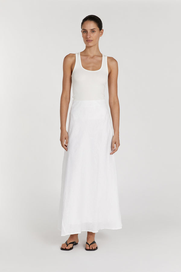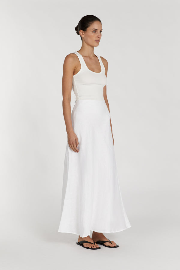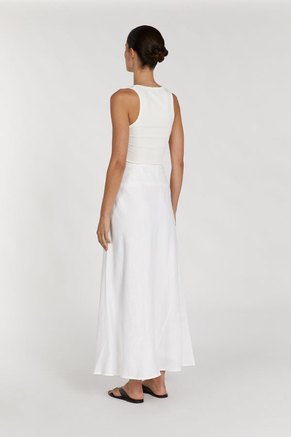 SYRAH WHITE LINEN MIDI SKIRT