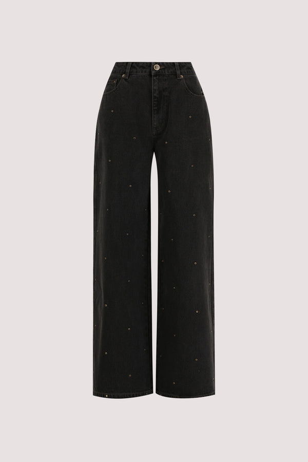 REAGAN 2.0 BLACK RINSE EYELET SLOUCHY JEAN