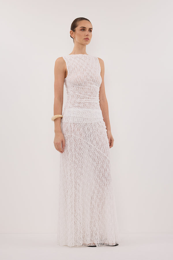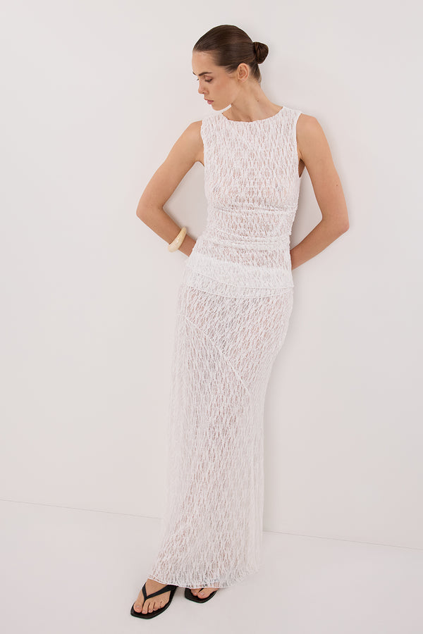 Semi-sheer, slight stretch lace fabricationCare Guide