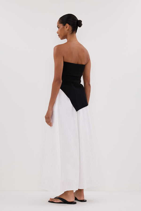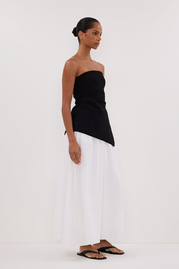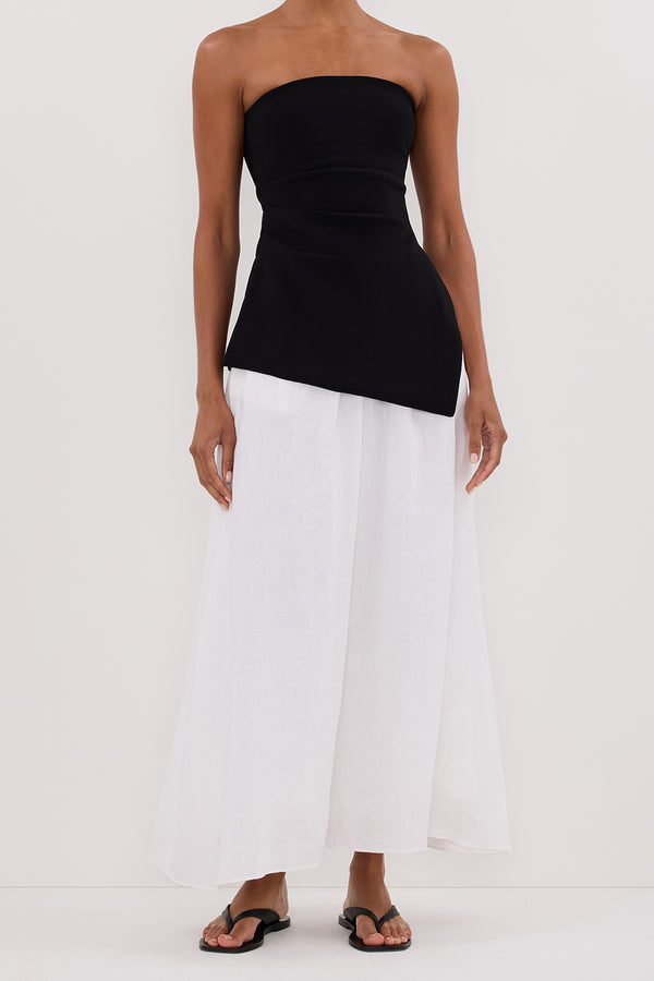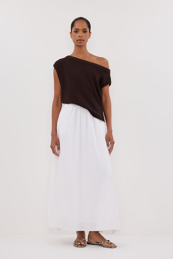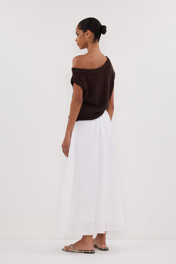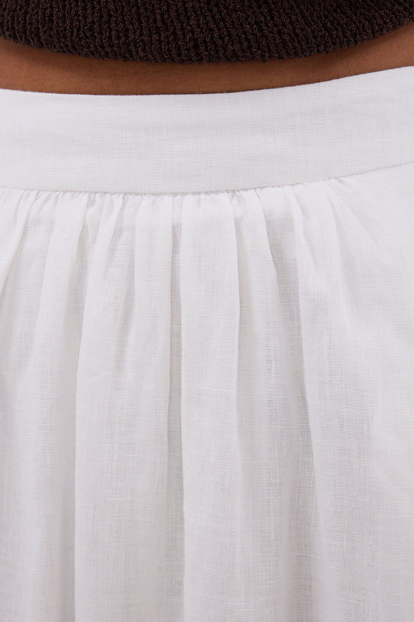 GEMIMA WHITE LINEN MIDI SKIRT