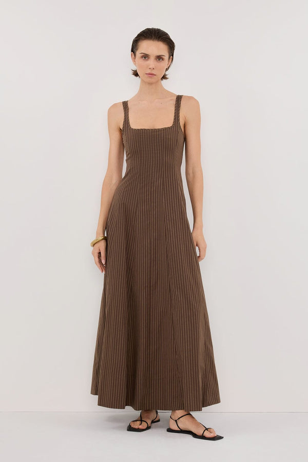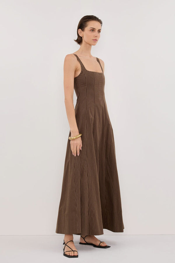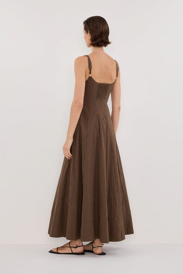 RILEY CHOCOLATE STRIPE MIDI DRESS