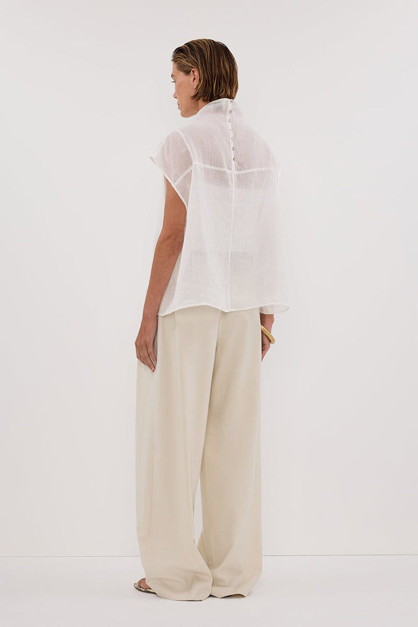 CARMEL WHITE RAMIE FUNNEL NECK TOP