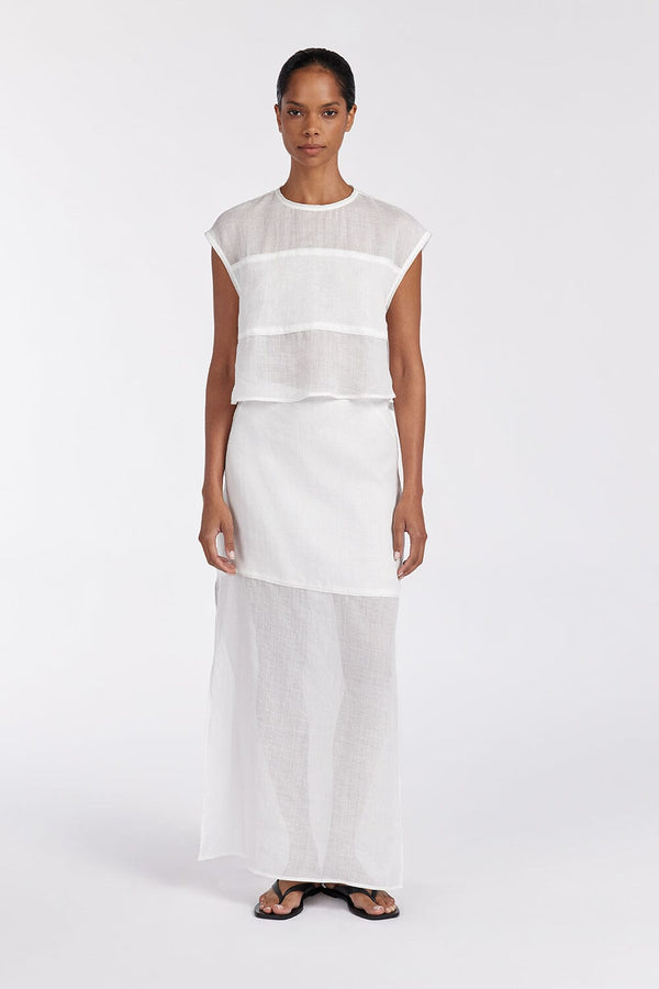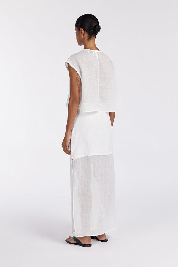 KAI WHITE RAMIE MIDI SKIRT