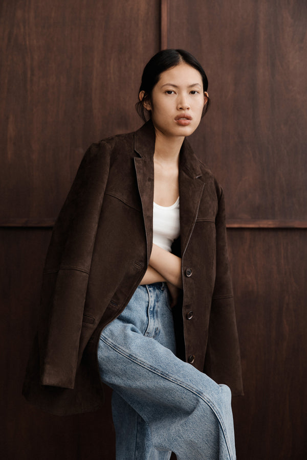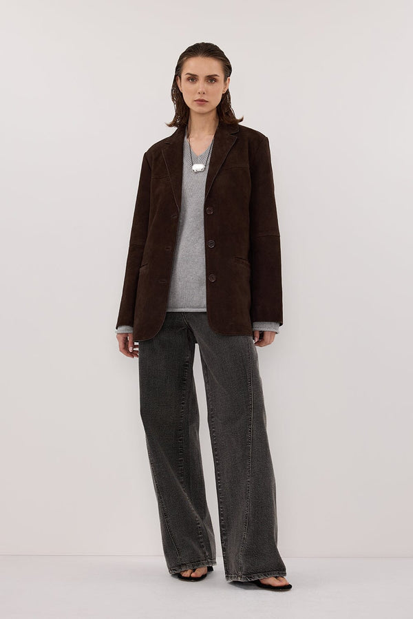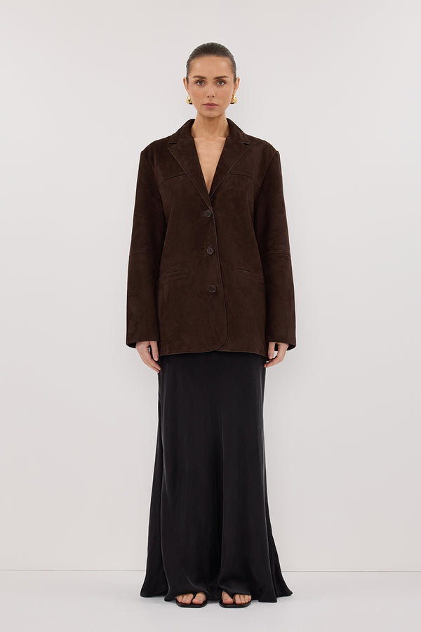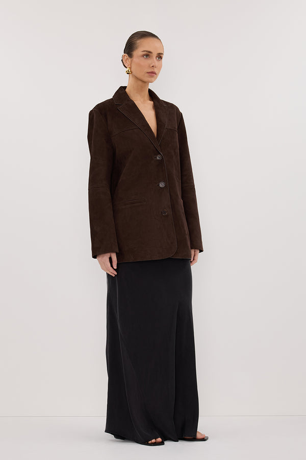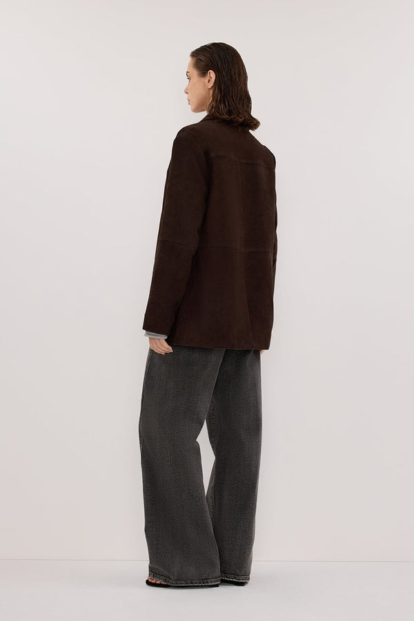 HENDRIX BITTER CHOC OVERSIZED SUEDE LEATHER JACKET