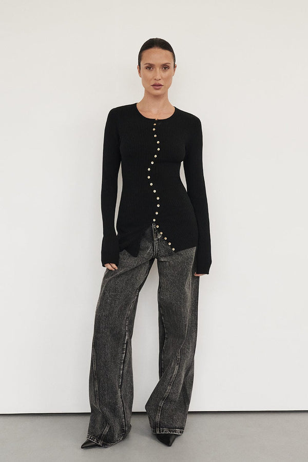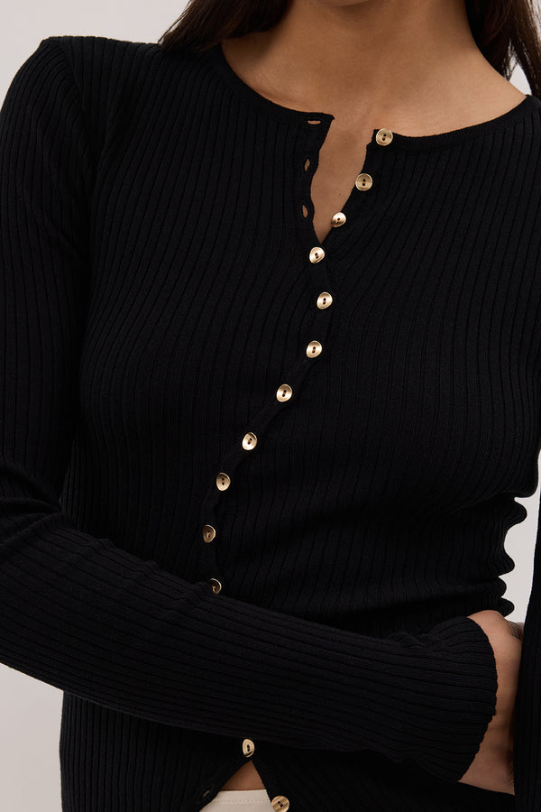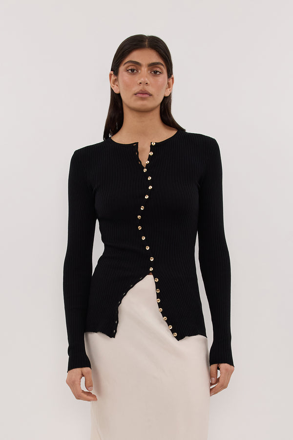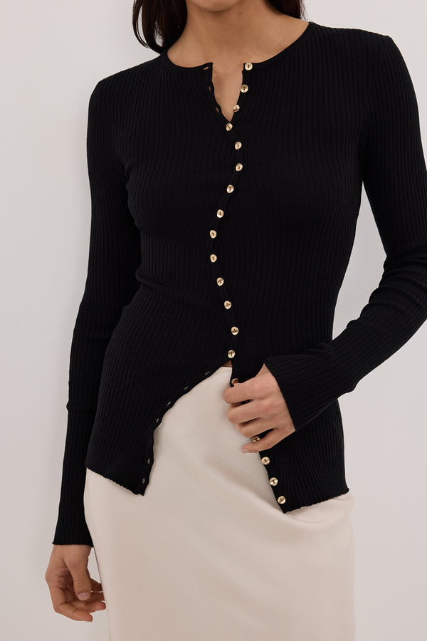 AMBER BLACK LONG SLEEVE KNIT CARDIGAN