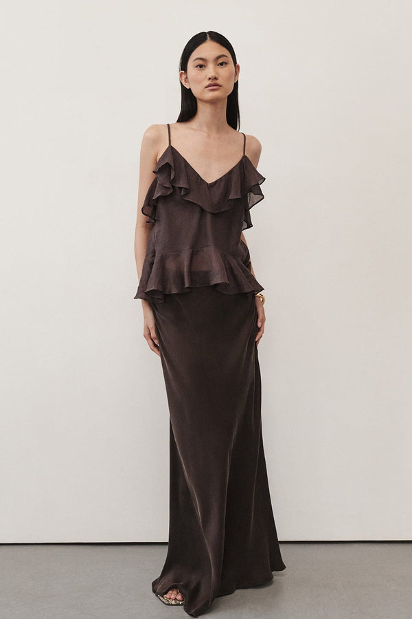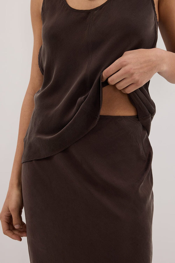 COLETTE BITTER CHOC SILK SKIRT