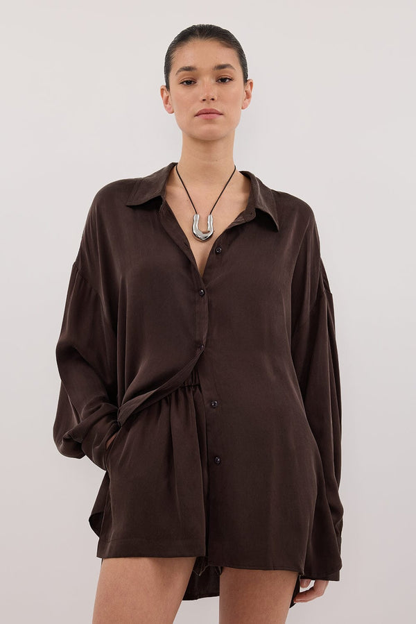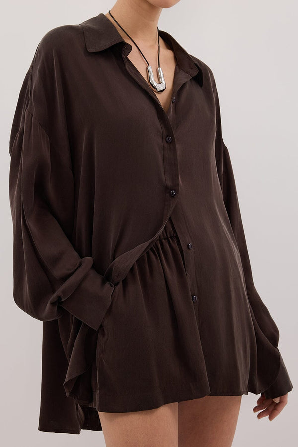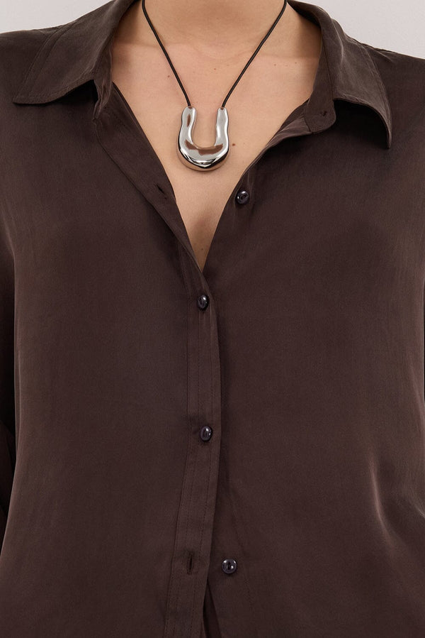 PERCY CHOC SILK LONG SLEEVE SHIRT