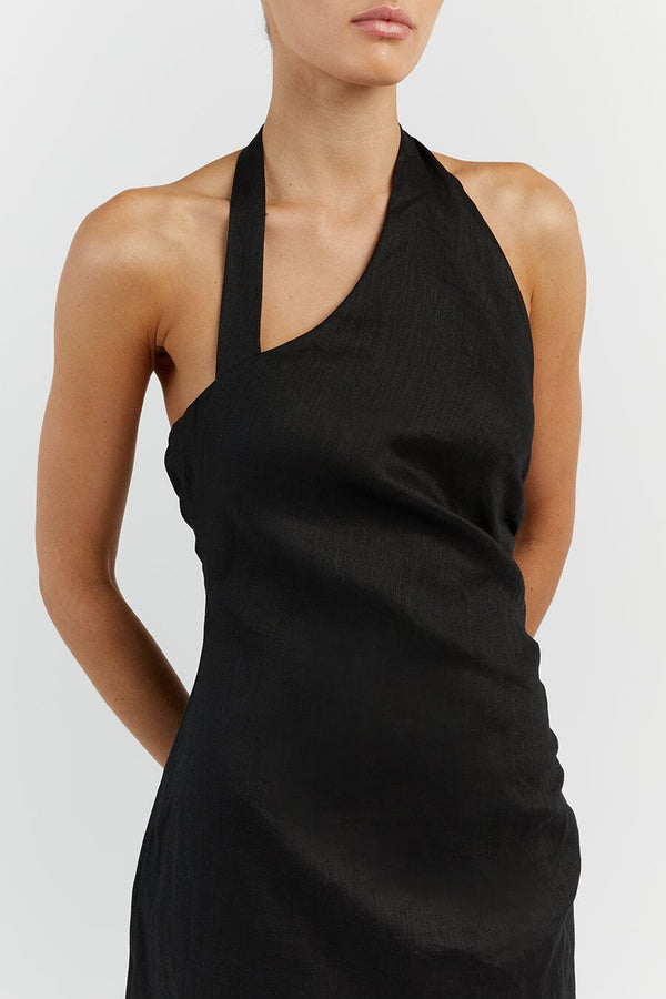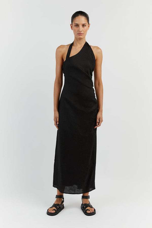 ZOEY BLACK ASYM LINEN MIDI DRESS