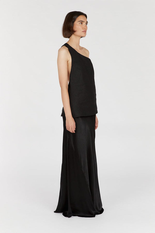 ADDISON BLACK LINEN ASYMMETRIC TOP
