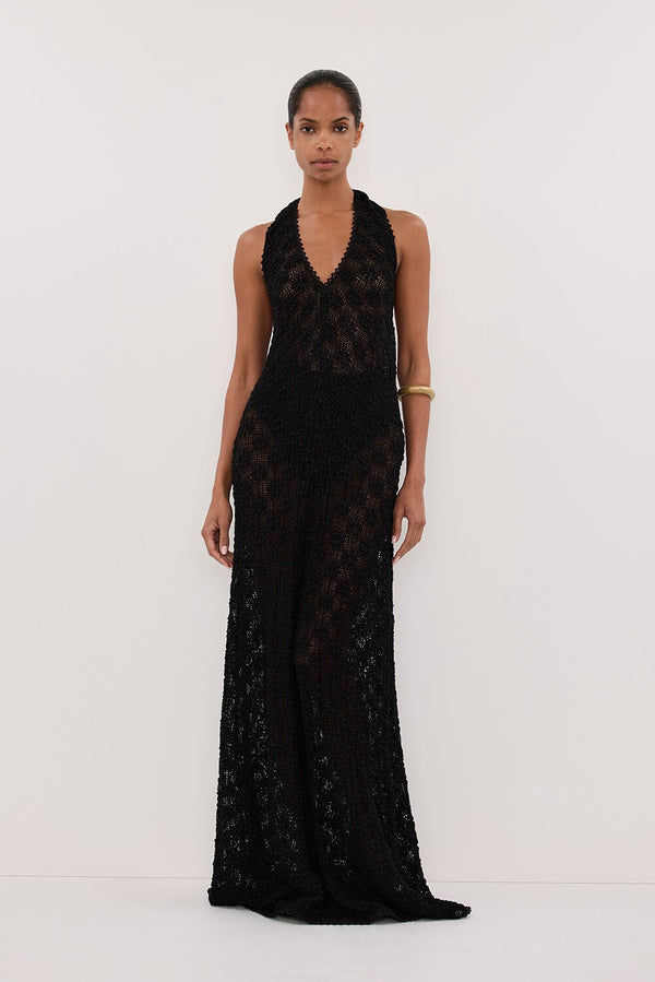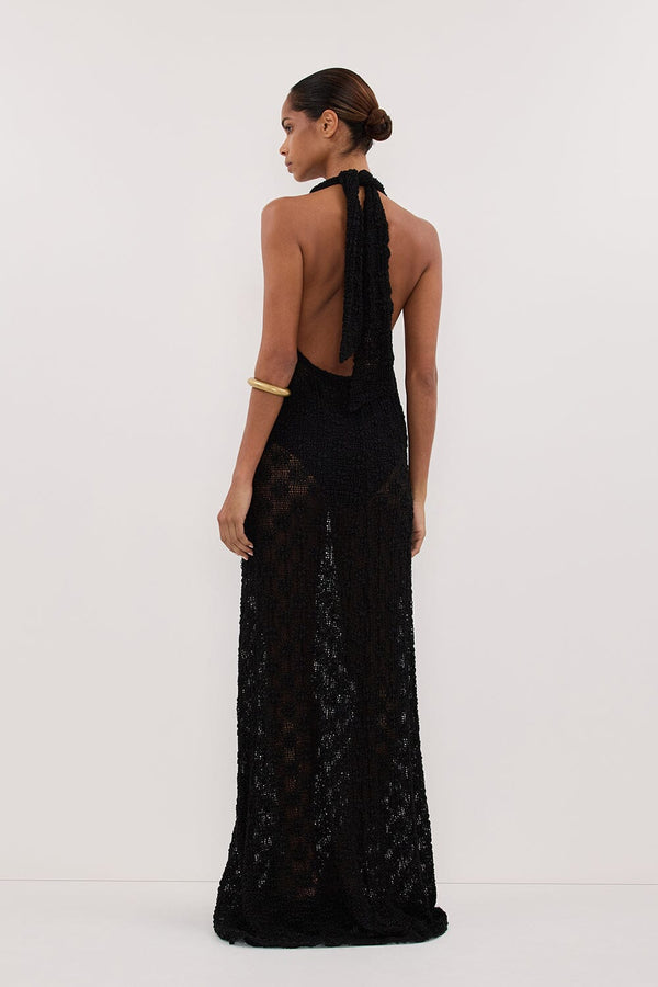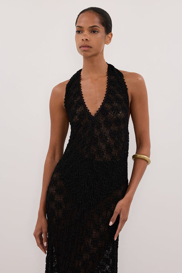 AGNES BLACK CROCHET HALTER MIDI DRESS