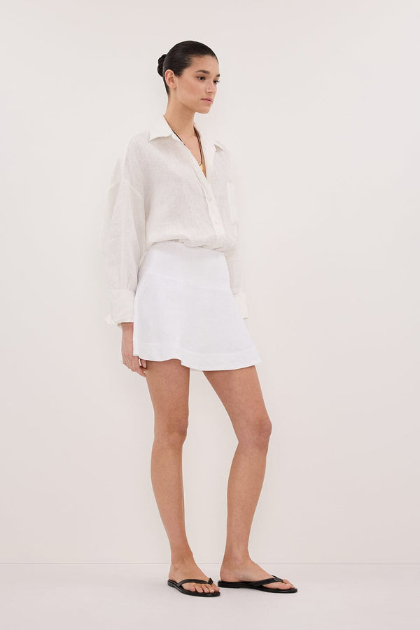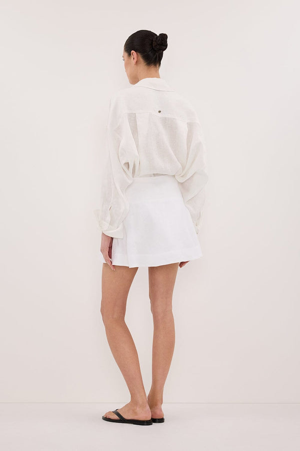 ALEA WHITE LINEN FLOUNCE MINI SKIRT