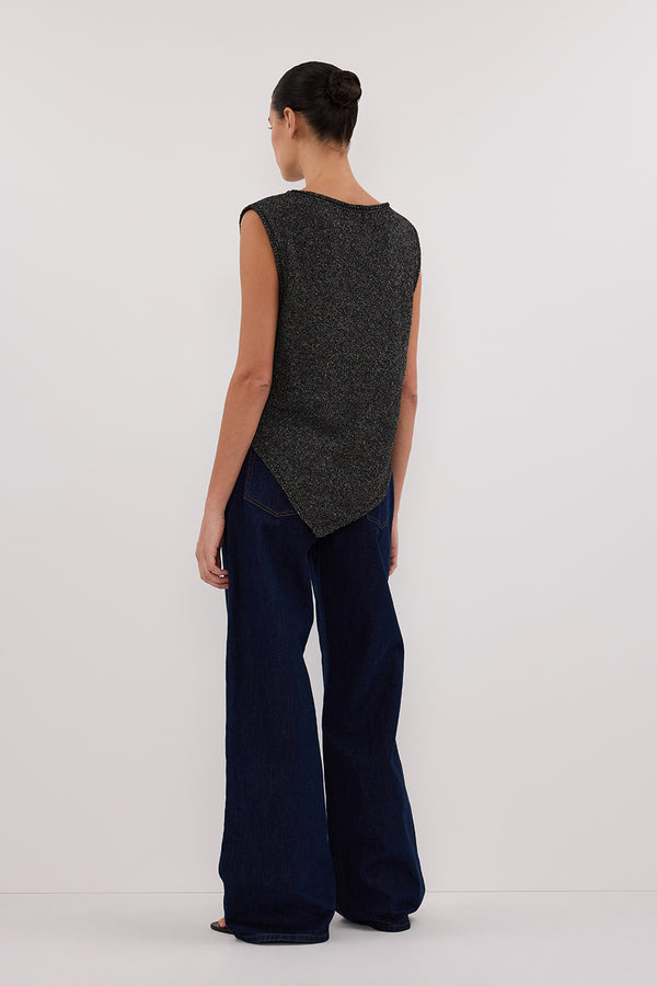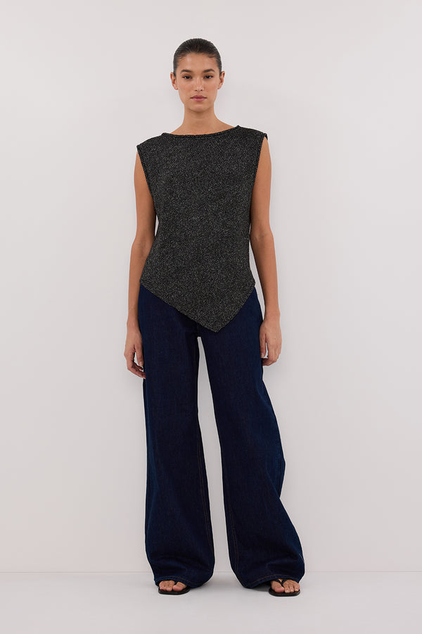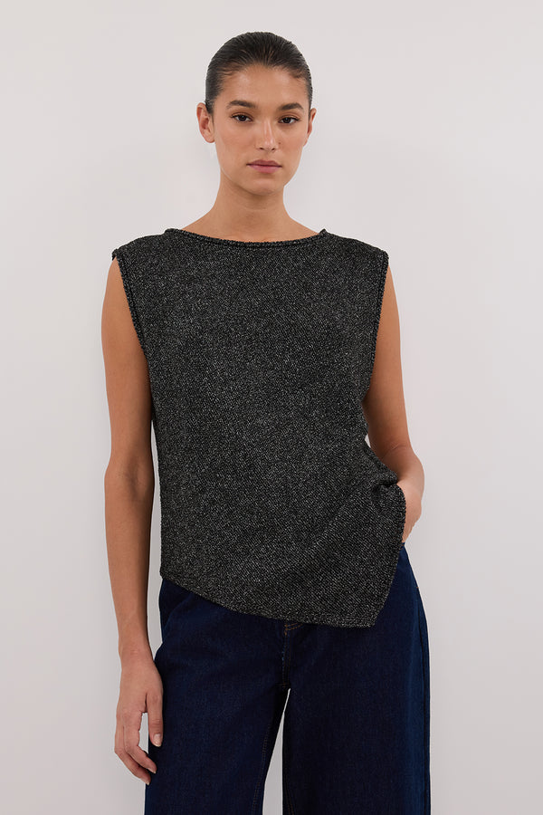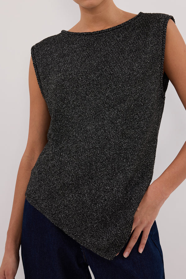ALTHEA BLACK MARLE ASYM KNIT TOP