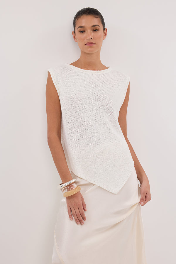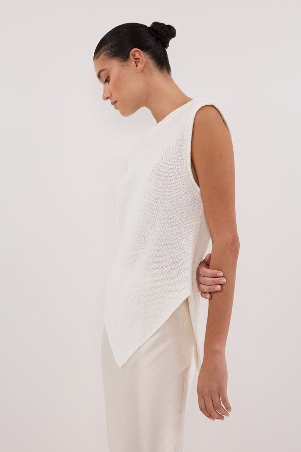 ALTHEA OFF WHITE ASYM KNIT TOP