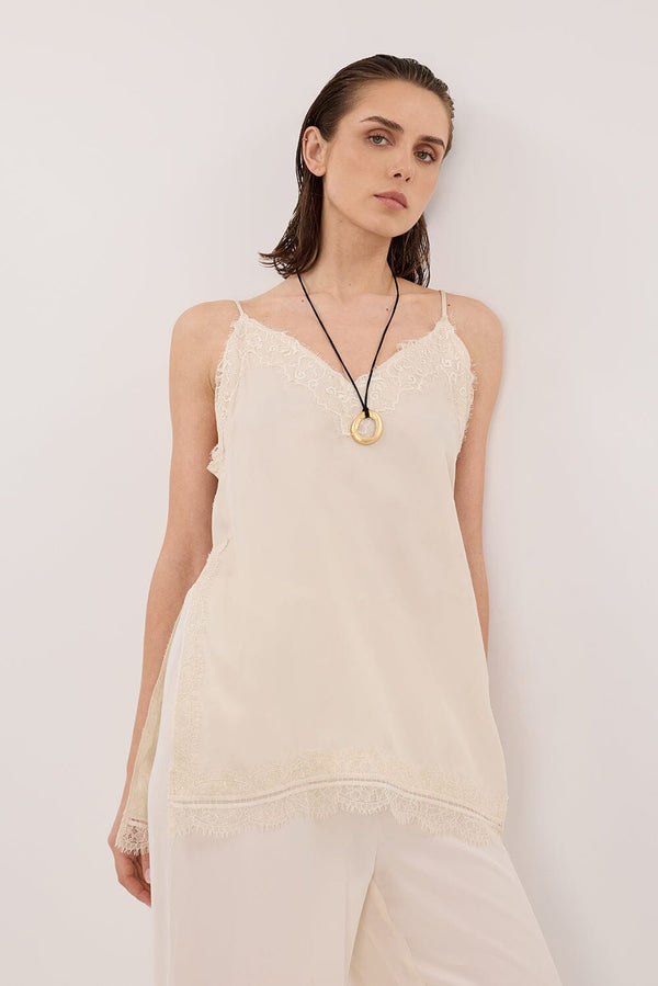ANDREA SANDSTONE SLEEVELESS LACE CAMI TOP - PRE ORDER