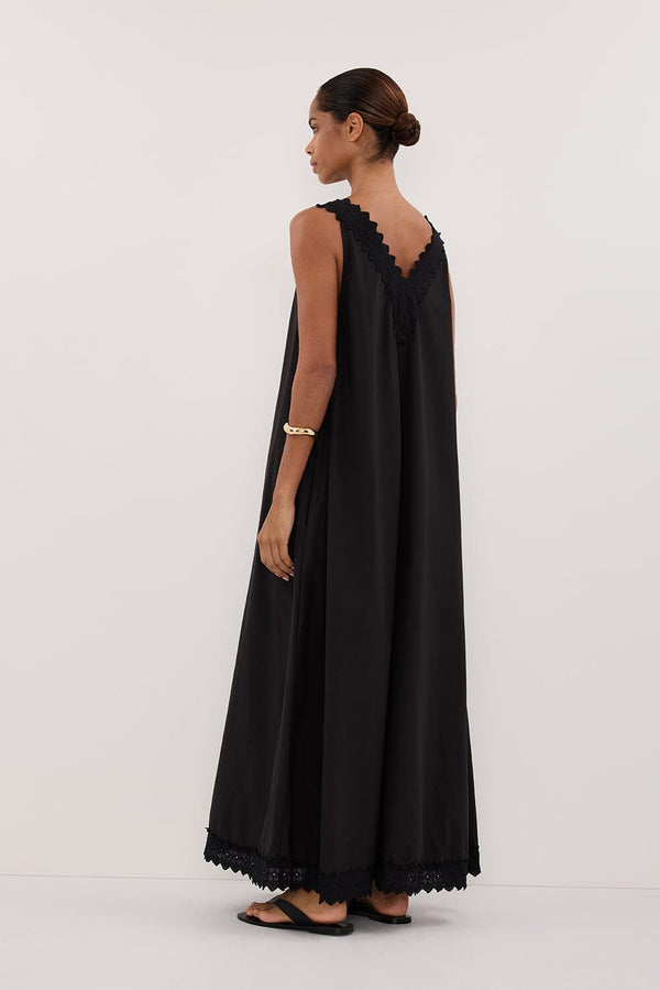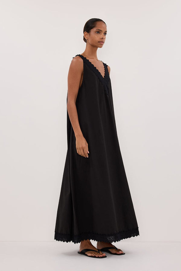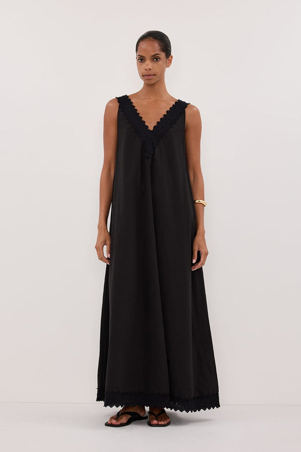ANNABEL BLACK SLEEVELESS V NECK MIDI DRESS - PRE ORDER