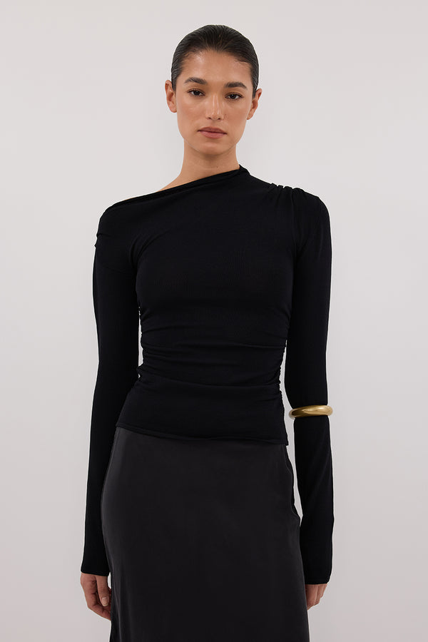 ARIEL BLACK LONG SLEEVE KNIT TOP