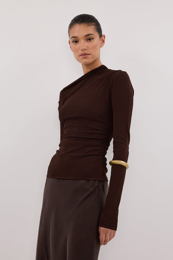 ARIEL CHOC LONG SLEEVE KNIT TOP