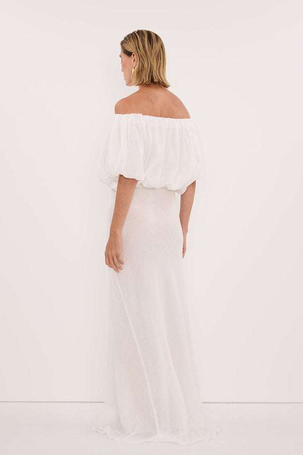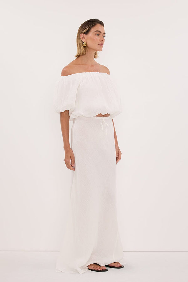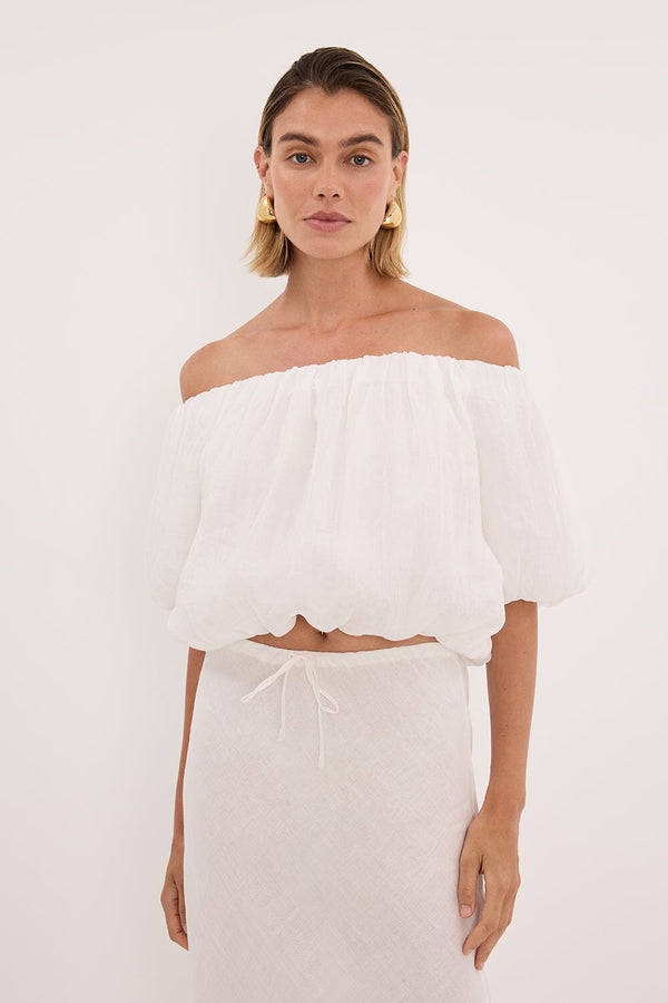 ARLO WHITE RAMIE OFF SHOULDER BUBBLE TOP