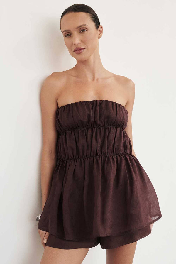 ARTIE WALNUT RAMIE STRAPLESS TOP
