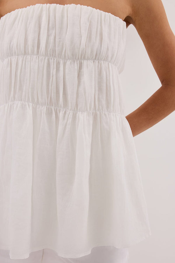 - Strapless white tiered ramie top