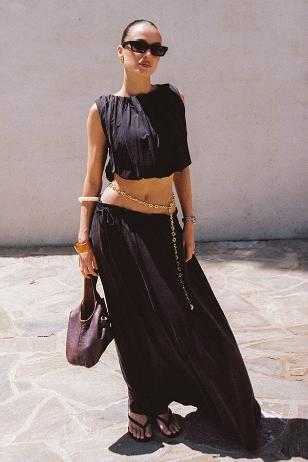 AVA BURNT CHOC MODAL BLEND MIDI SKIRT