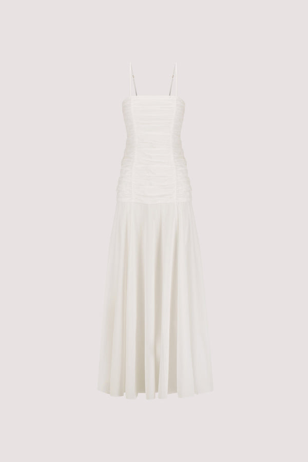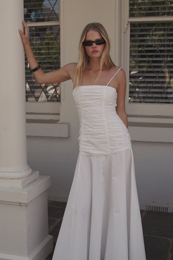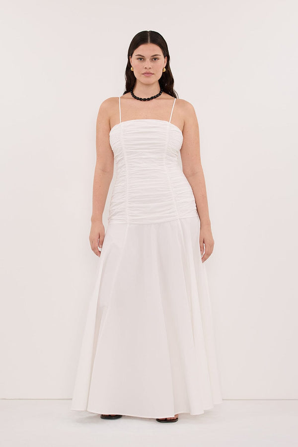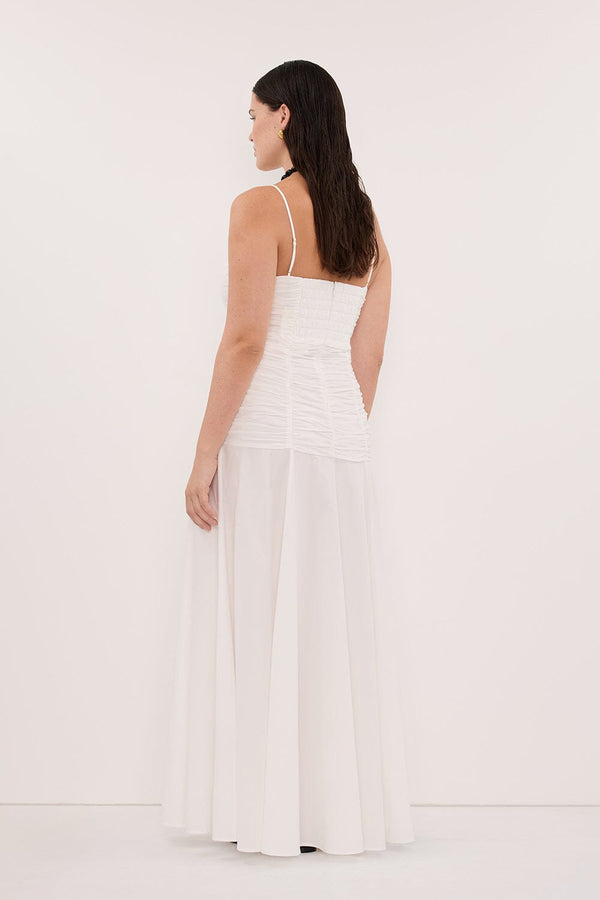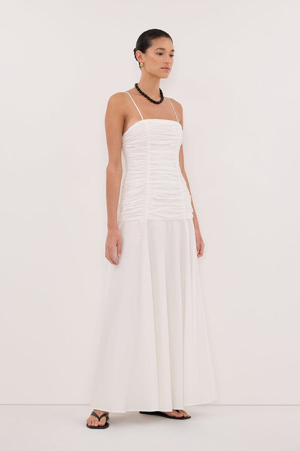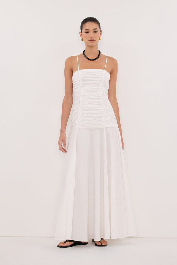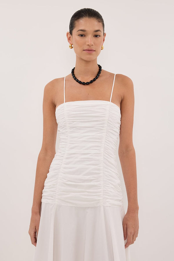 CARA WHITE SLEEVELESS COTTON MIDI DRESS