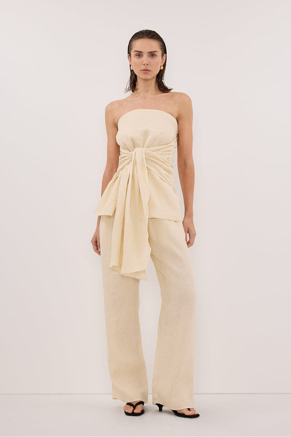 CARLA STRAW DRAWSTRING LINEN PANT