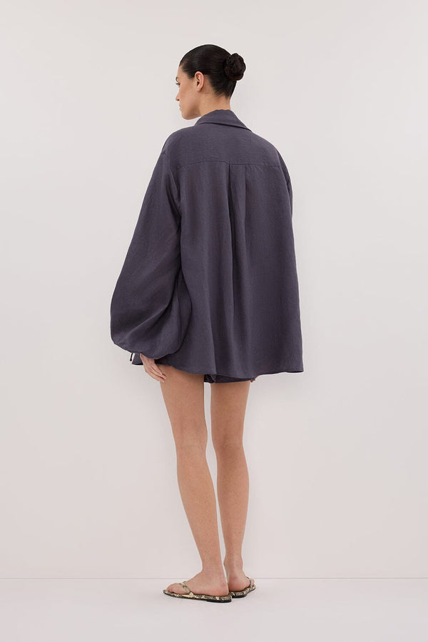 CARLA WASHED INDIGO LONG SLEEVE LINEN SHIRT