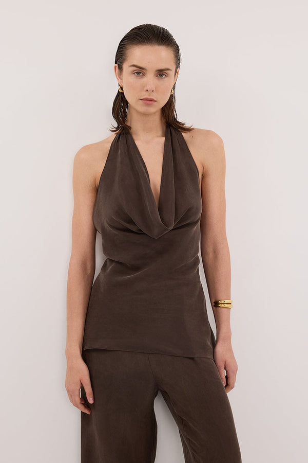 CARLENE BITTER CHOC SLEEVELESS CUPRO COWL TOP