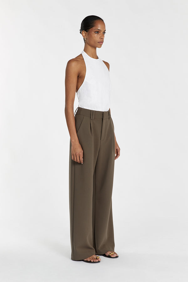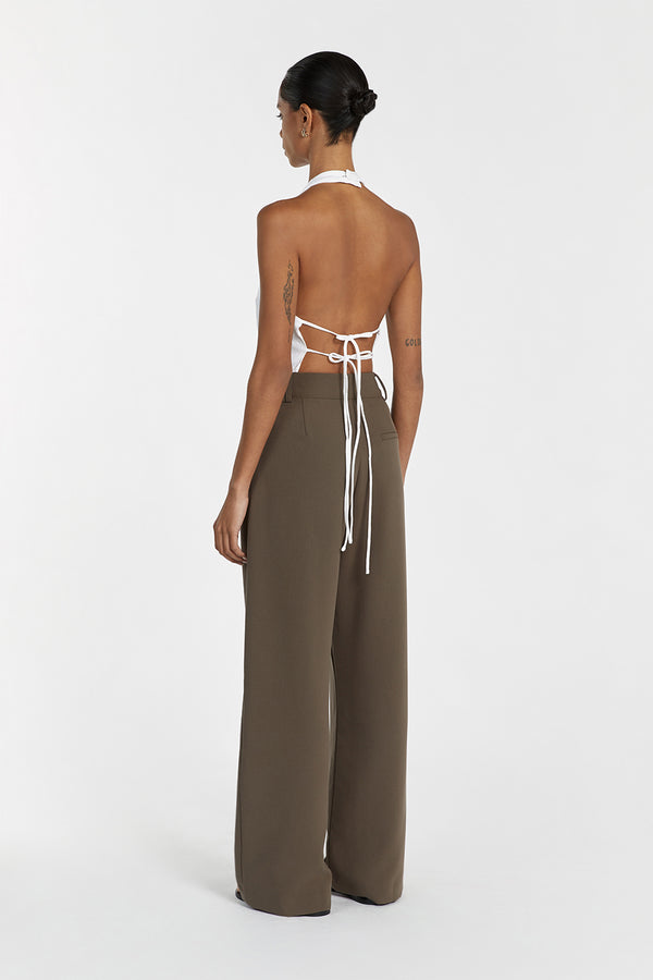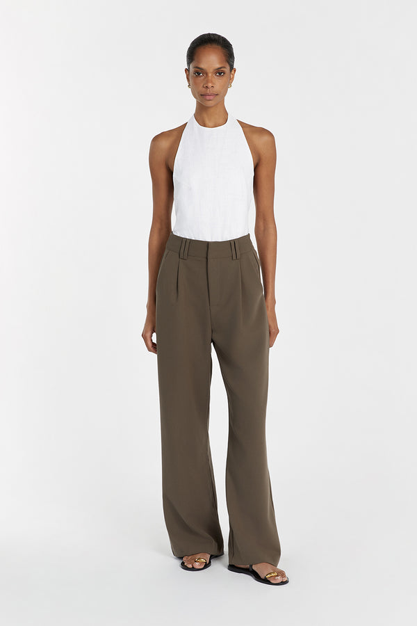 - High rise pant crafted with classic tailoring techniques