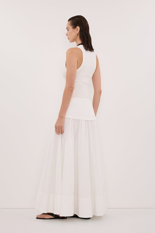 CLAIRE WHITE COTTON MIDI SKIRT