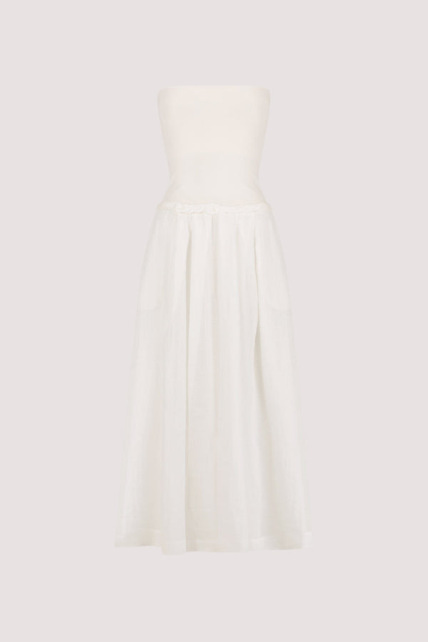 COCO WHITE STRAPLESS HYRBID MIDI DRESS