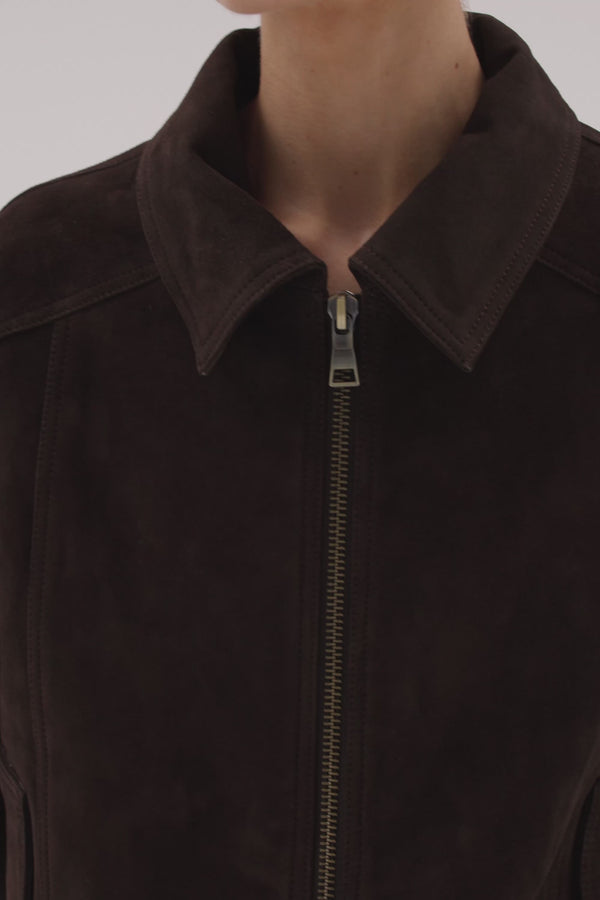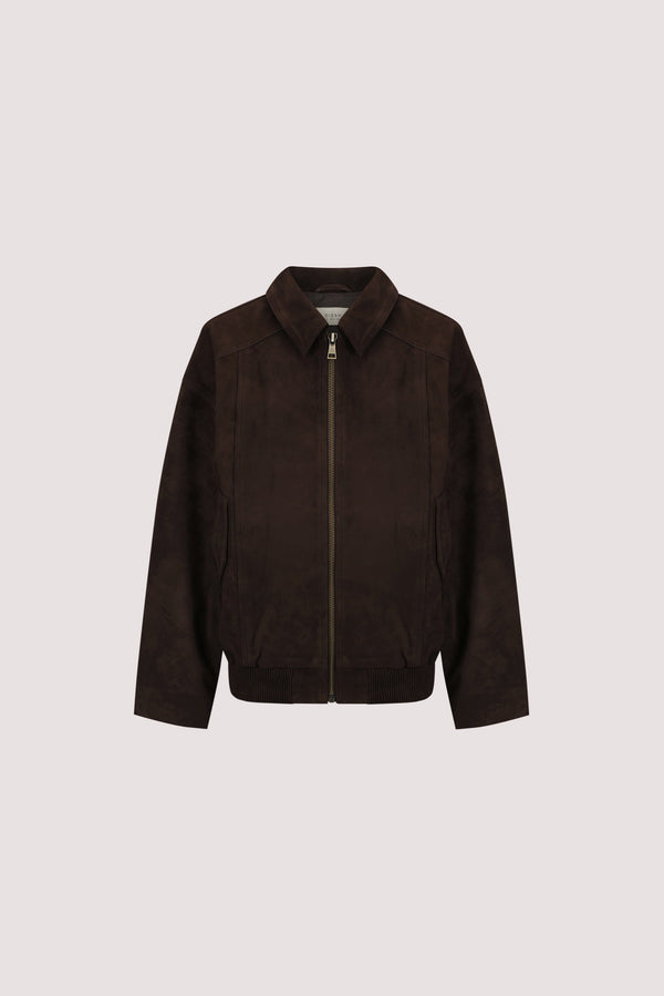 DENVER BITTER CHOC SUEDE LEATHER BOMBER JACKET