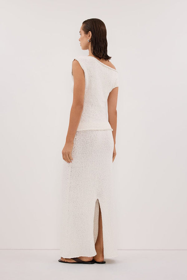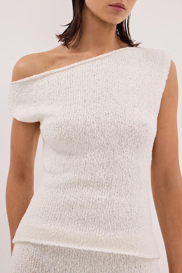 DINA OFF WHITE COTTON ASYM KNIT TOP