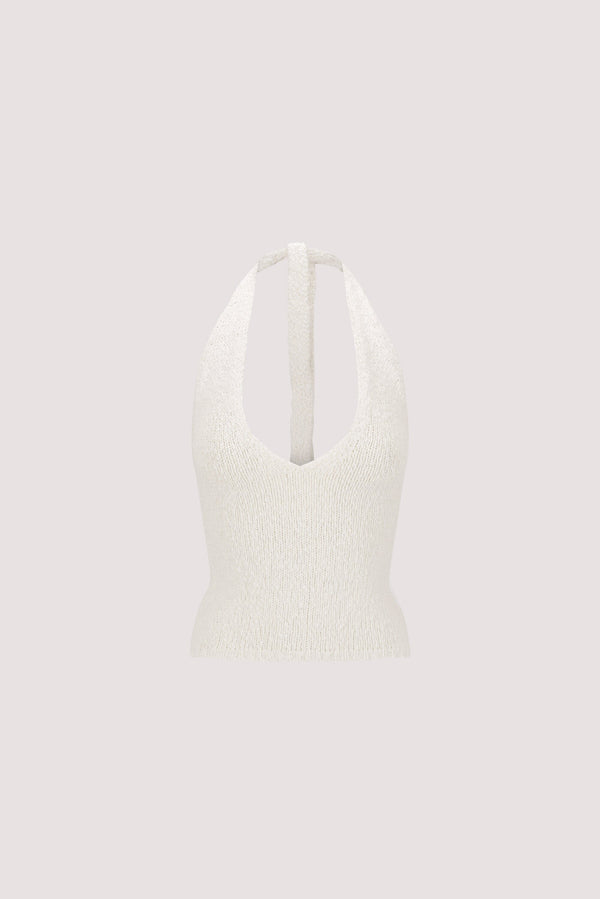DINA OFF WHITE SLEEVELESS HALTER KNIT TOP