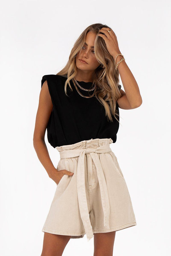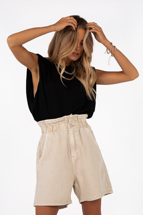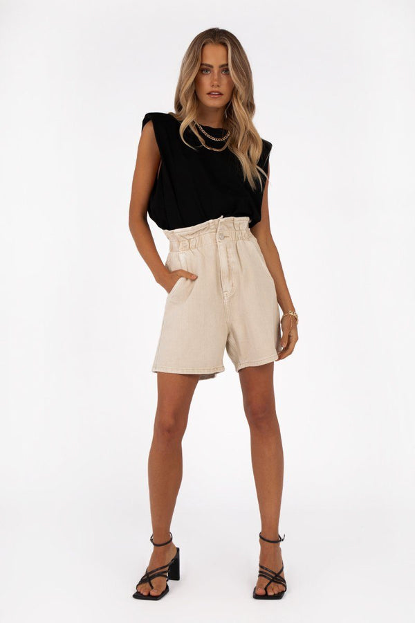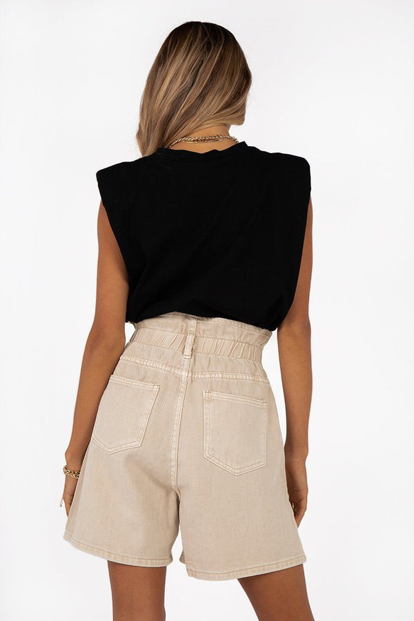 EDDIE BEIGE PAPERBAG DENIM SHORT