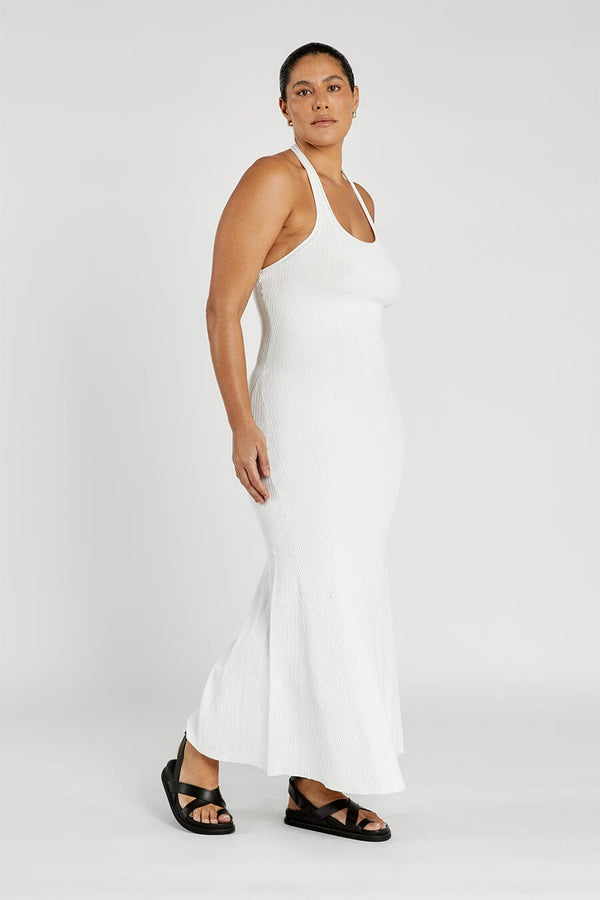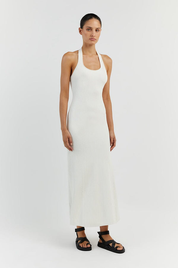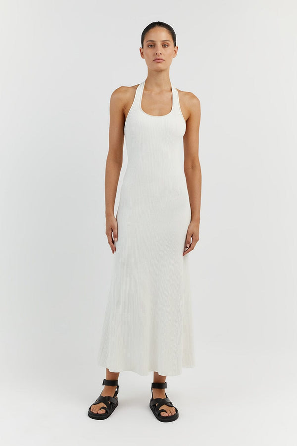 EDDISON OFF WHITE KNIT MIDI DRESS