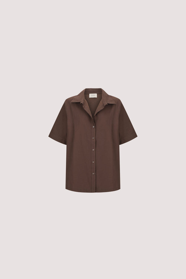 ELARA CHOCOLATE OVERSIZED SHORT SLEEVE SHIRT