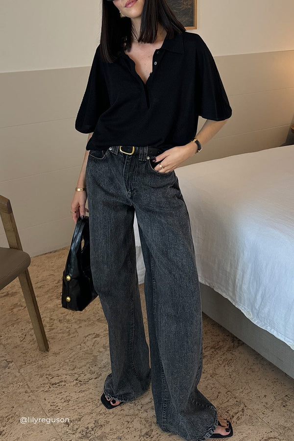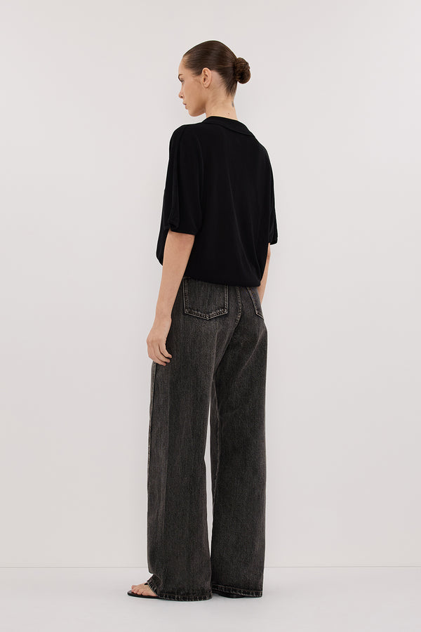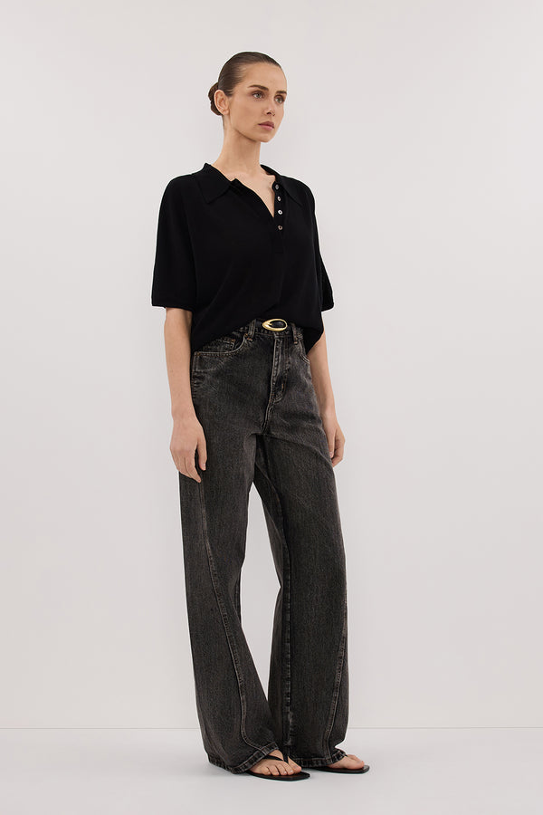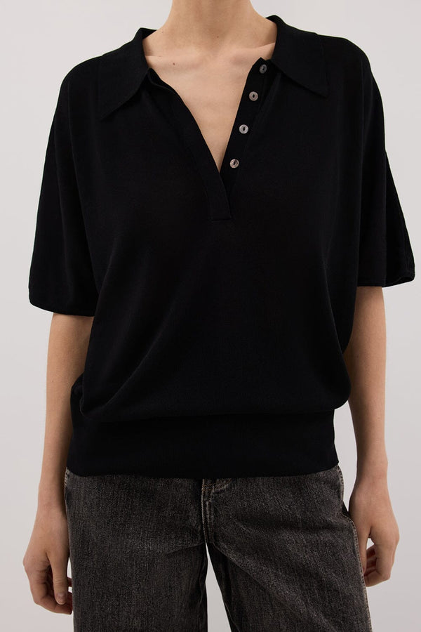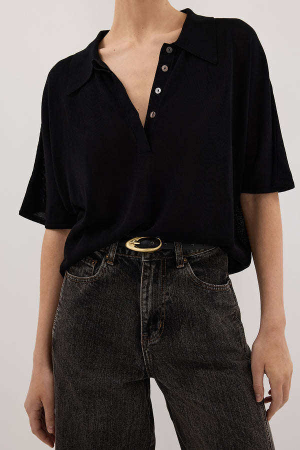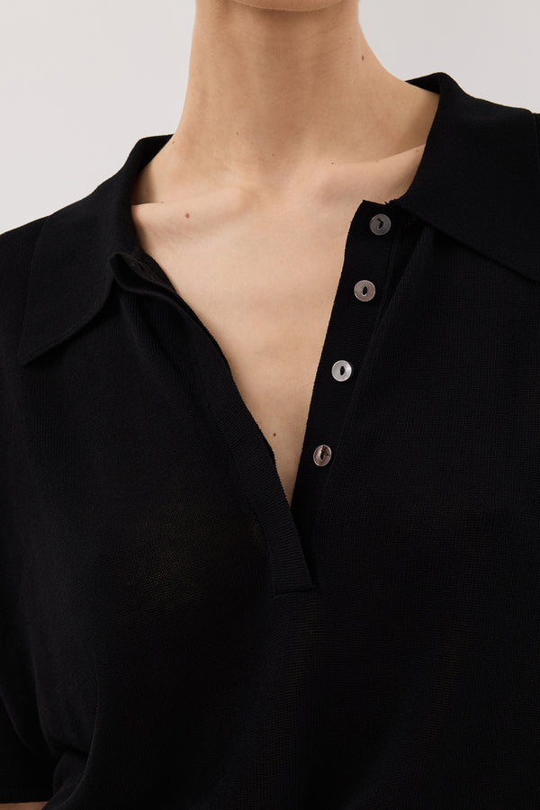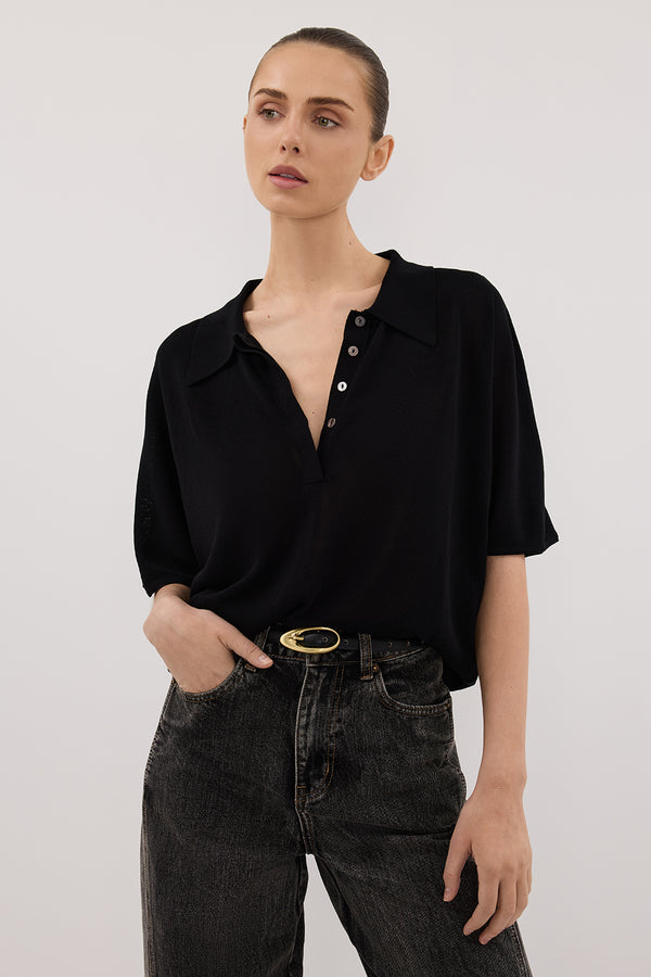 ELI BLACK POLO KNIT TOP