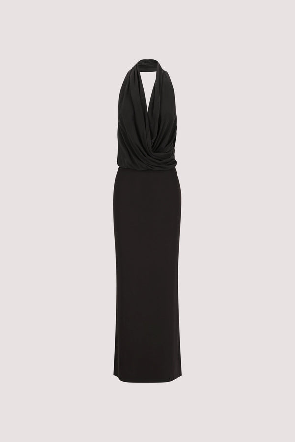 FELICITY BLACK SLEEVELESS HALTER MIDI DRESS