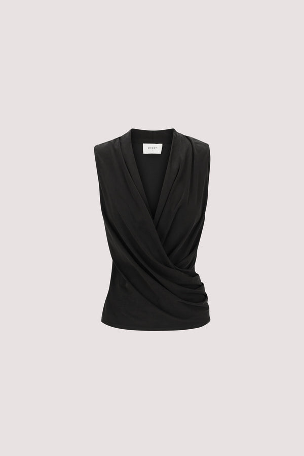 FELICITY BLACK SLEEVELESS WRAP TOP