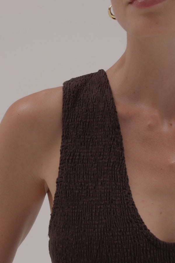 FLORENCE BURNT CHOC COTTON MIDI DRESS