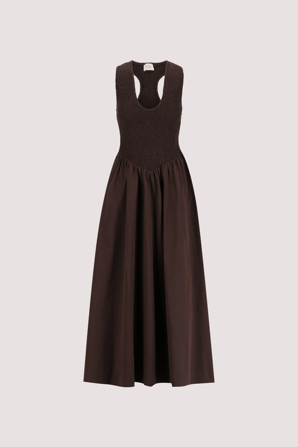 FLORENCE BURNT CHOC COTTON MIDI DRESS