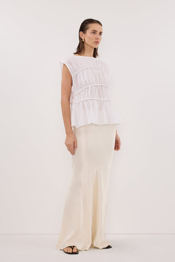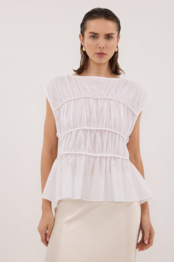 FLYNN WHITE LINEN BLEND TIERED TOP