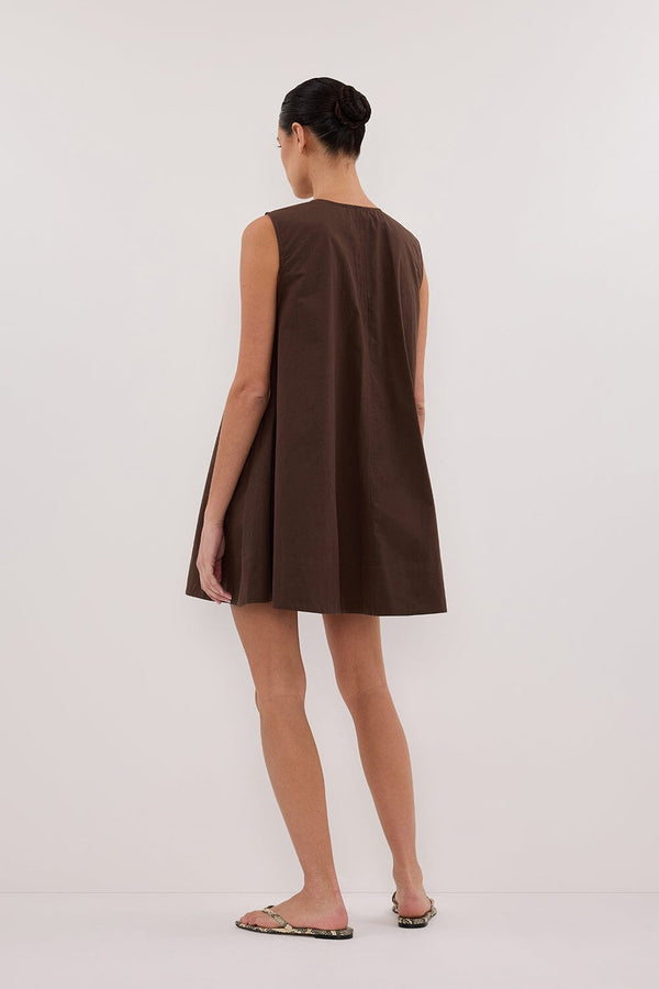 GABBY BITTER CHOC OVERSIZED COTTON MINI DRESS